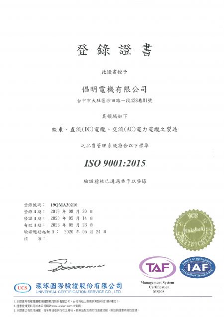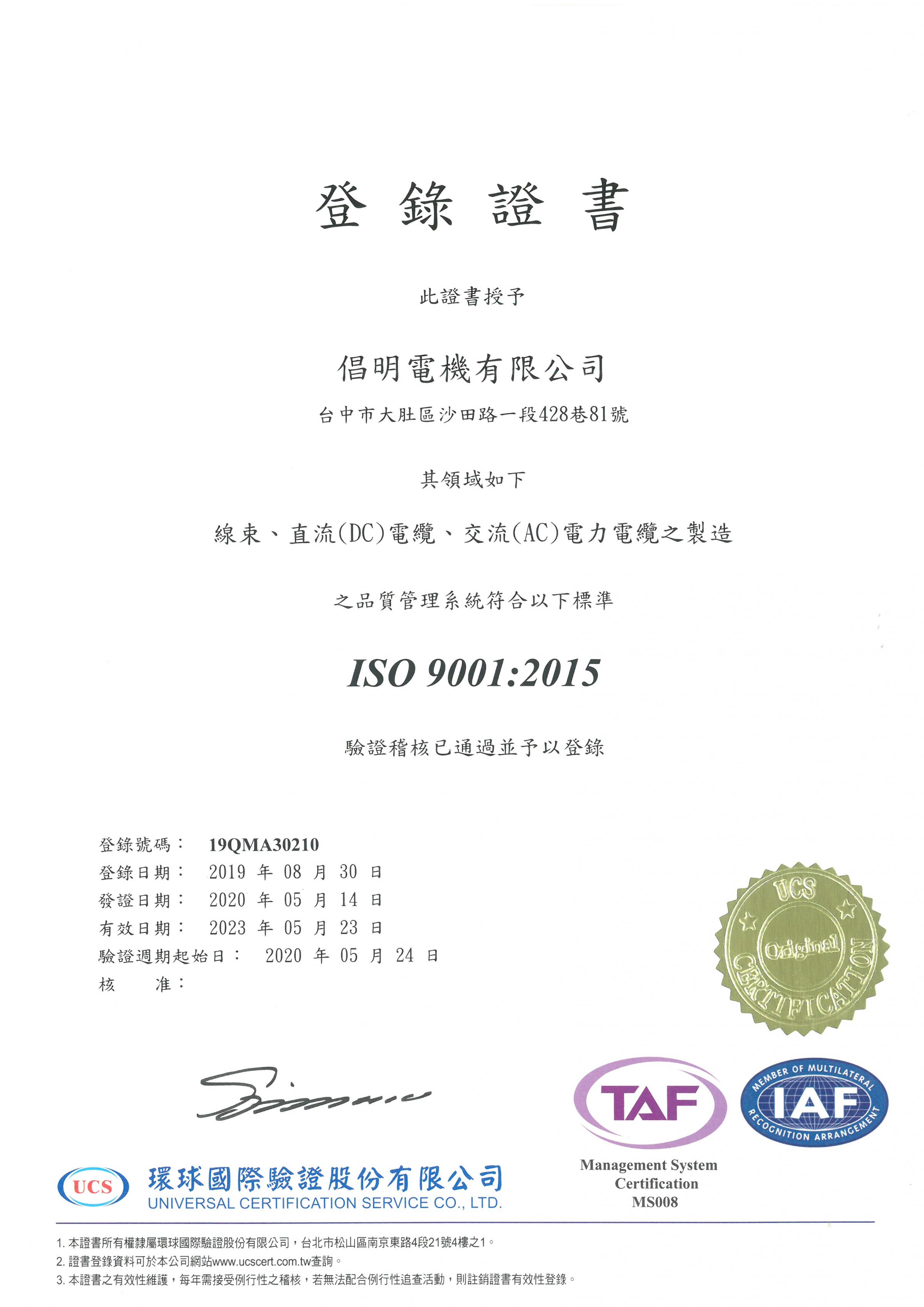 2017/05/12 Charng MinA CMEC é certificada ISO 9001:2015 desde 12 de maio de 2017. A CMEC é a empresa líder no lançamento da versão atualizada da ISO 9001. Mantemos a melhoria contínua e oferecemos a melhor qualidade aos nossos produtos.